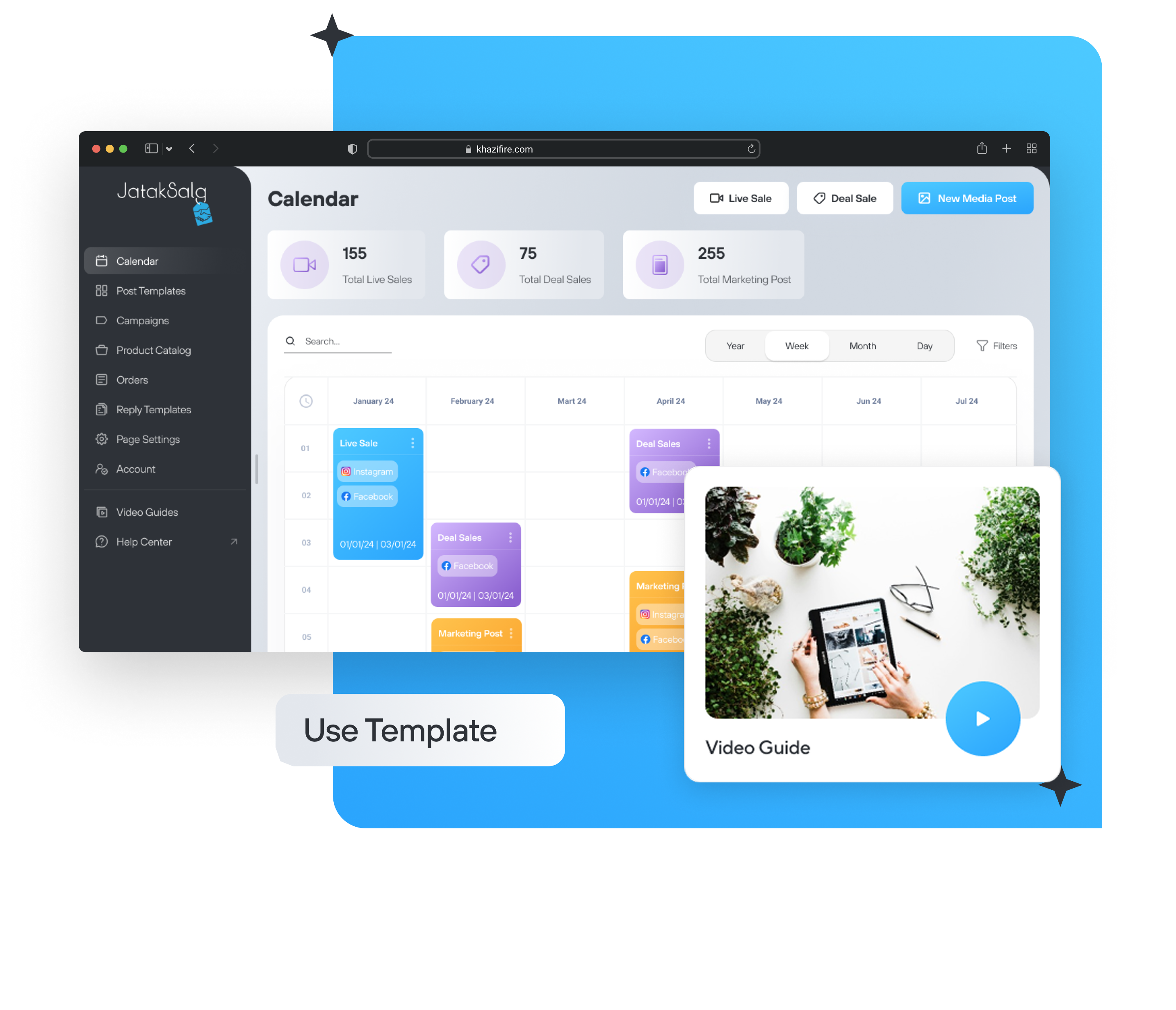Jataksalgs Dashboard er en omfattende løsning, der integrerer live salg, planlægning og marketing, hvilket gør det nemt at styre din online forretning